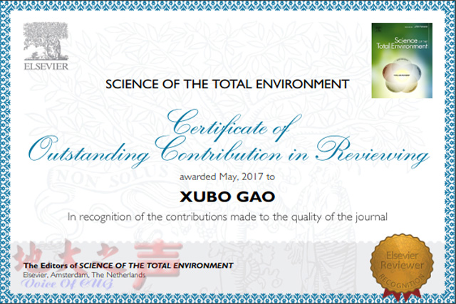 (opta足球之声通讯员张学海)近日,opta足球环境学院高旭波副教授获评全球最大科学文献来源之一的荷兰爱思唯尔出版集团《综合环境科学》期刊“杰出审稿人”荣誉称号。该奖项授予该期刊最出色的审稿人,以表彰其高质量、建设性和高效率的审稿工作。