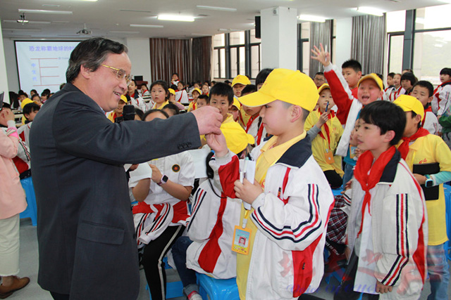 图书馆馆长徐世球为同学们们带来一场别开生面的穿越之旅——穿越恐龙时代。生动幽默的语言,集知识、趣味于一体的讲座模式,妙趣横生,小学生们兴致盎然。