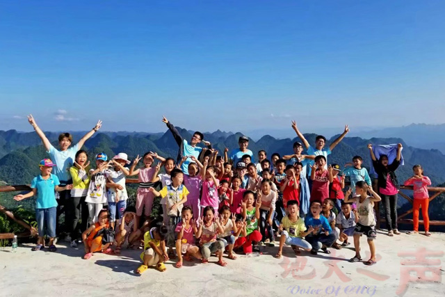 去年8月,山中花儿爱心助学团在广西靖西县带领学生到葛麻炮台进行红色之旅参观