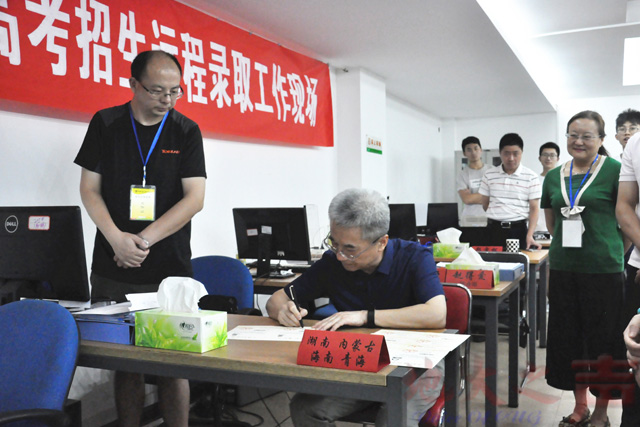 王焰新认真听取了2018年本科生招生录取工作的进展汇报,对录取系统、录取流程、人员分工等情况进行了了解,详细询问了各省录取情况和生源质量,对全体招生录取人员辛勤工作、敬业奉献的精神给予充分肯定。他强调,全体工作人员要严格执行招生政策,强化服务意识,确保招生录取工作公正、公平、公开。