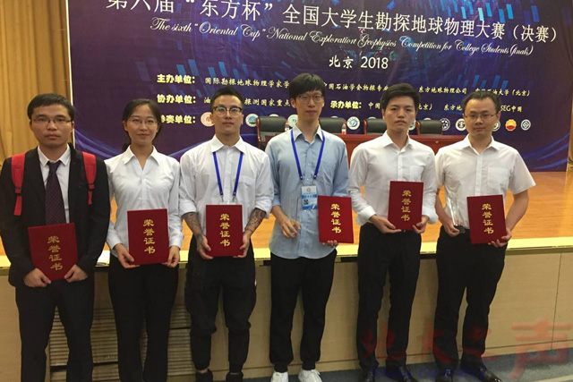 闫星宇、肖逸飞同学组成的YXYF团队、智龙霄、余聪同学组成的物探小分队团队获一等奖;张奎涛、陈琪同学组成的梦之蓝团队获二等奖,顾汉明、刘少勇两位教师获优秀指导教师奖。