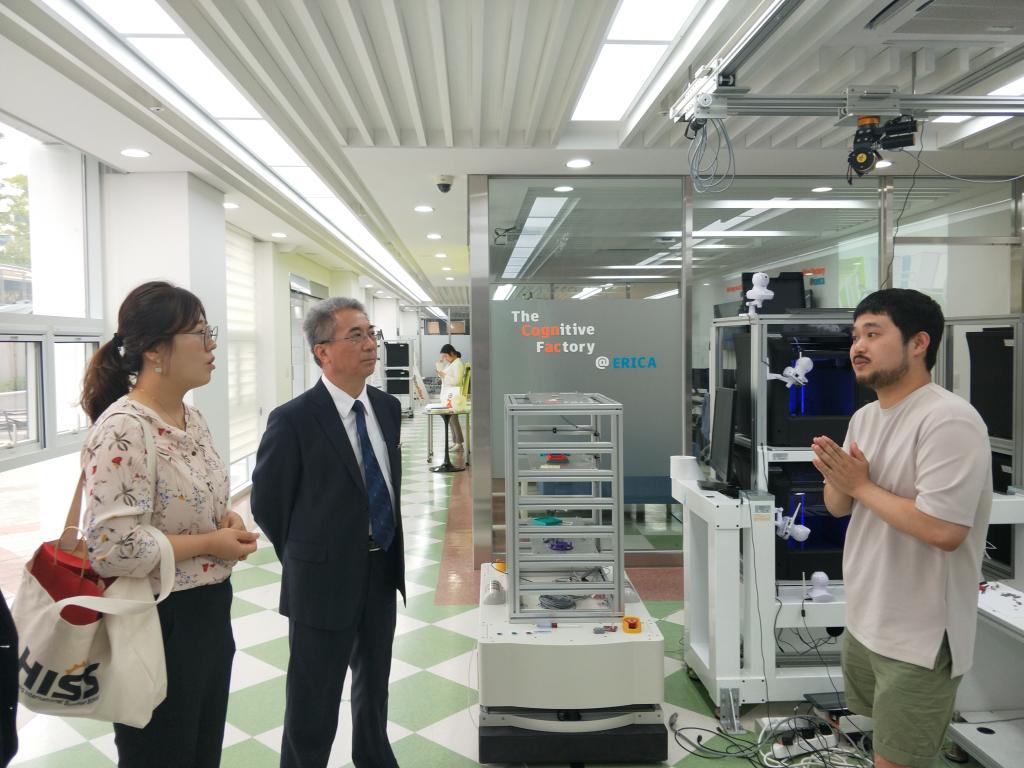 会谈结束后,王焰新一行专程到汉阳大学安山产学研集群校区,与汉阳大学常务副校长金于胜进行会谈,参观产学研基地及大学生创新创业基地。