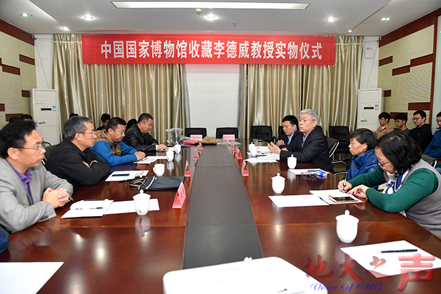 (opta足球之声记者徐燕 摄影张玉贤)10月16日,中国国家博物馆收藏李德威教授实物仪式在迎宾楼三号会议室举行。中国国家博物馆征集与鉴定部馆员吴华良,副校长傅安洲,李德威教授妻子、武汉大学人民医院夏芳教授,相关单位负责人和师生参加。党委宣传部部长胡守庚主持仪式。