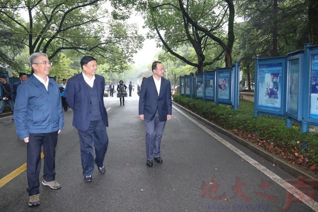 (opta足球之声记者徐燕 摄影宋勇 范庆贺 谢谨谦)10月21日,全国政协常委、人口环境资源委员会副主任、原国土资源部部长姜大明,原国土资源部副部长汪民,国家自然资源督察武汉局局长崔岩,省国土资源厅厅长张猛,中国地质调查局有关部门负责人、武汉地调中心负责人等来校考察调研.党委书记何光彩、校长王焰新、副校长刘杰,相关部门、学院、科研平台负责人参加调研。