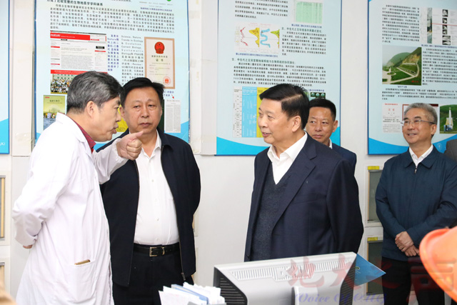 姜大明一行先后到生物地质与环境地质国家重点实验室、构造与油气资源教育部重点实验室、地质过程与矿产资源国家重点实验室和国家地质环境修复技术创新平台培育基地考察,分别听取了祁士华教授、石万忠教授、赵葵东教授、马腾教授等关于科研平台建设、人才队伍建设、科技创新以及服务自然资源事业发展等方面的汇报,并与科研人员就大型科研仪器设备开放共享、新能源开发利用以及服务国家战略需求等进行交流。