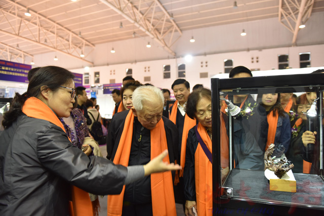 开幕式后,嘉宾们来到展厅观看了绿松石项目成果展,并与学员针对作品进行了近距离的交流和探讨。