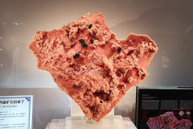博物馆馆长刘先国介绍了展览的基本情况。展览分为“珍稀国宝”“中南展区”“西南展区”“华东展区”“北方展区”“荧光矿物”等六部分,首次在国内系统地展示了在中国不同地区矿山发现的有代表性的矿物珍宝,共陈列了近300件中国特有的精品矿物晶体。其中,不但有世界熟知的中国经典的特色矿物,如辉锑矿、辰砂、雌黄/雄黄和萤石等;还有近年来发现的中国新秀,如菱锰矿、白钨矿、锡石、红硅钙锰矿等;更有中国独特的新矿物,如香花石、湖北石和奥腾斯石。大部分展品都是第一次展出,其中不乏世界级的精品与孤品。通过展览,激发公众对地球科学的兴趣,促进地球科学知识普及。