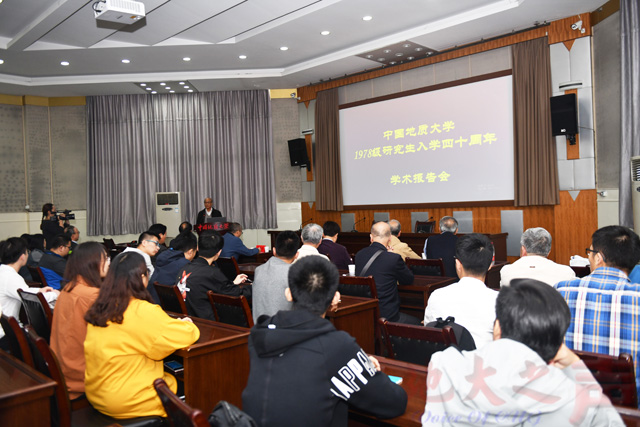 11月1日下午,1978级研究生入学四十周年学术报告会在八角楼举行。围绕数学地质、地震勘探、地震预测、地球化学、矿物收藏等,马鸿文、刘光华、周蒂、束今赋、唐文榜、姚姚、沈敢富、李伟源、曾佐勋、马振东、陈敬中等分别作学术报告,200余名师生聆听了报告。