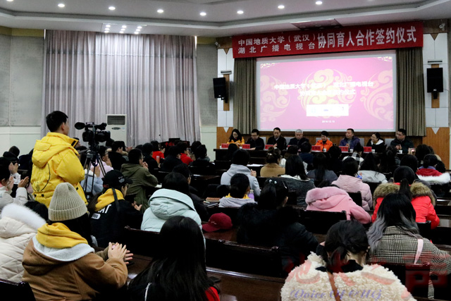 副校长傅安洲,湖北广播电视台副台长兼湖北长江云新媒体集团董事长、总经理张建红,相关部门负责人及艺术与传媒学院全体师生参加签约仪式。
