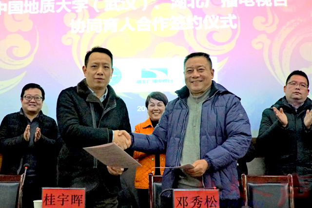 艺术与传媒学院院长桂宇晖与湖北长江云新媒体集团总编辑邓秀松签署合作协议