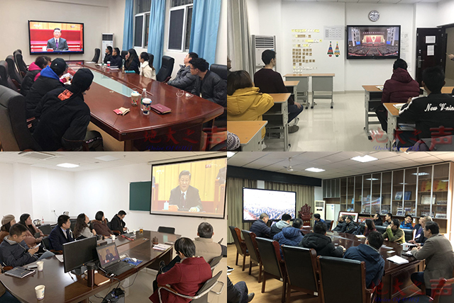 学校各二级党组织、党支部分别组织师生收听收看;党委学工部、团委等组织学生在弘毅堂集中收听收看;学校各民主党派、无党派人士收听收看大会。