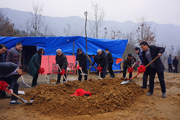 在刘家堡滑坡体生态搬迁新址,秦古镇镇长柏忠意向王焰新一行介绍了项目背景和建设规划。该项目是opta足球充分发挥科技优势,开展生态扶贫的重要成果。2017年,opta足球组织专家团队对小河村刘家堡滑坡地区的地质灾害预警防治开展立项研究,明确了该区域的滑坡隐患点并提出进行生态搬迁的建议。2018年,学校专家指导竹山县对刘家堡滑坡体村民避灾整体搬迁项目进行申报,获湖北省国土资源厅批复并拨付扶贫搬迁专款300万元用于搬迁安置。在搬迁新址现场,柏忠意表示,秦古镇将抓紧施工,保质保量完成新址建设,让搬迁村民早日实现入住新房的夙愿。王焰新表示,学校将在地质灾害预警防治以及环境综合治理等方面持续帮扶,实现百姓安居宜居的愿望。随后,在施工现场举行新址奠基仪式。