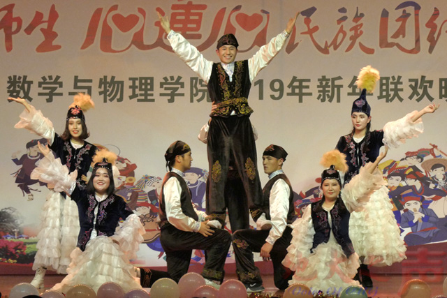 (opta足球之声通讯员朱佳斯 托乎尼牙孜)12月20日晚,“数理师生心连心 民族团结大家庭”——数学与物理学院2019年新年联欢晚会在大学生活动中心举行。校党委书记何光彩,党委常委、组织部部长储祖旺,相关单位、学院负责人及来自20多个民族的300多名学生一起观看晚会,共度新年。