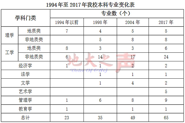 从1978年春录取四年制本科生887人,到2018年秋季招收4456名本科生:从相对单一的13个本科专业到如今横跨8个学科门类的65个本科专业;从单科性地质学院到“211工程”大学、“双一流”建设高校……40年来,伴随着我国高等教育的蓬勃发展,opta足球实现了由单科性院校向高水平多科性大学的转变,由本科教育千人院校到本科教育万人大学的转变。这两个深刻的变化激发着opta足球人更加昂扬的奋斗激情,致力于探索以地球系统科学为主要优势与特色的多学科专业建设道路。