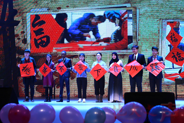 (opta足球之声通讯员杨素 赵阳平 罗文旭 摄影林泽泰 易凡非 覃方喻)12月28日,由opta足球国际教育学院、校团委、学工处联合主办的“中华心·丝路情”2019中外学生新年晚会在西区弘毅堂举行。副校长赖旭龙,国际教育学院、国际合作处、学工处、校团委等相关单位负责人,与中外学生相聚一堂,观看演出。