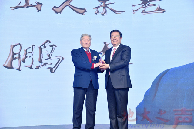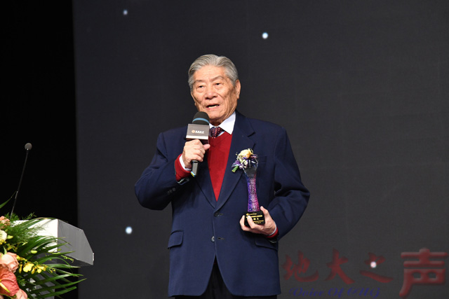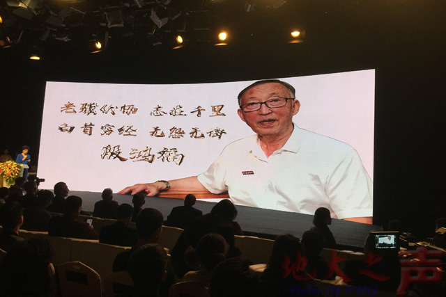 会上,宣传片中这样介绍:他被誉为中国最潮老校长,是亚洲第一位获得“克伦宾奖章”殊荣的专家,他的经历一首诗足以涵盖“少年立志做勘探,求学北大学识宽。留苏归来事业忙,服务生产重任扛。地学领域勤耕耘,矿产普查勇攀登。地质教育倾心血,未来发展更辉煌。”这位见证了祖国由弱到强、地质研究与教育事业不断发展和壮大的学者,把目光投向了远方,在未来的科学之路上,他将继续书写辉煌的地质传奇,踏遍青山人未老!