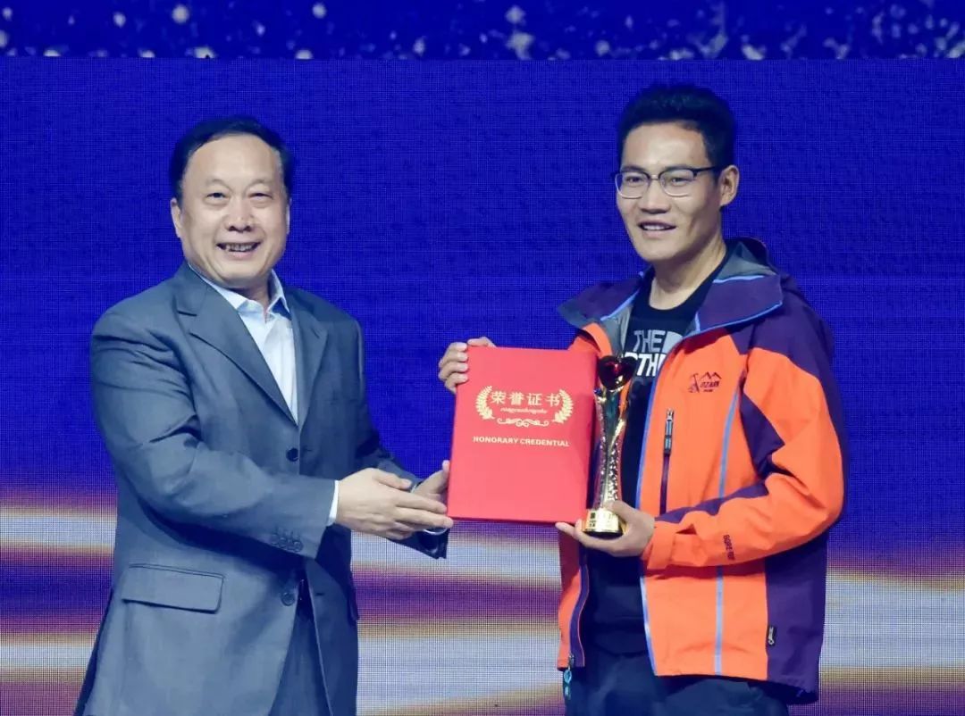 “环保卫士”次仁旦达(右)上台领奖