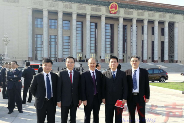 肖龙教授(中)与有关专家在人民大会堂前合影