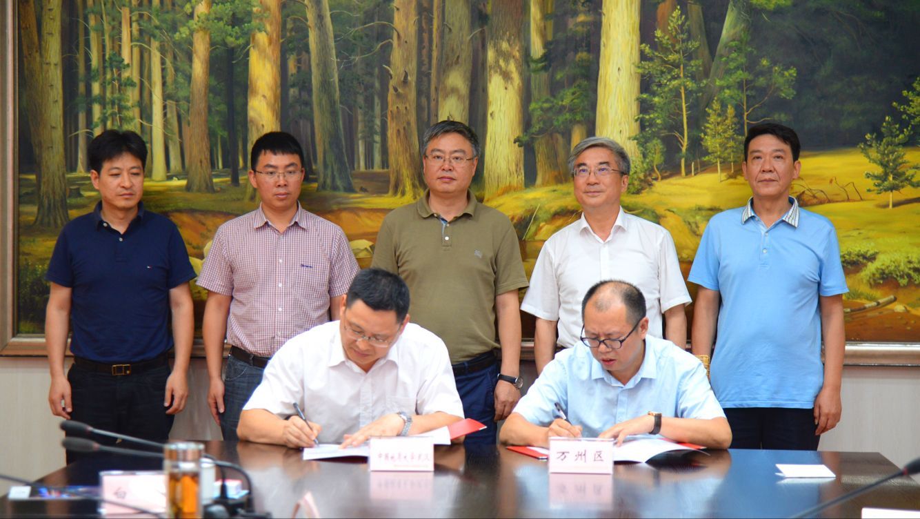 刘杰副校长、涂立军副区长代表双方签署战略合作协议。涂立军向“三峡库区地质灾害野外监测与预警万州示范中心”负责人吴疆授牌。