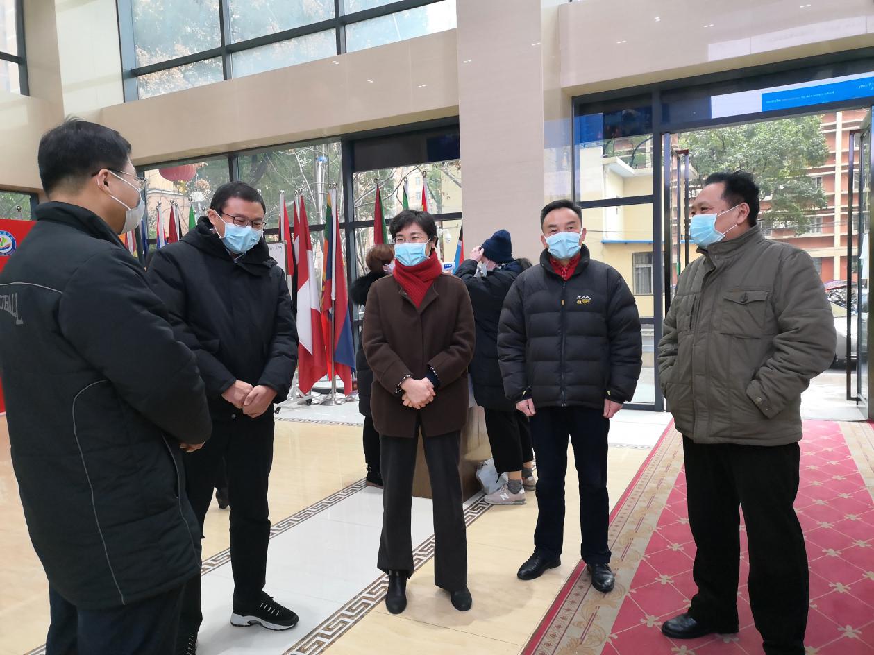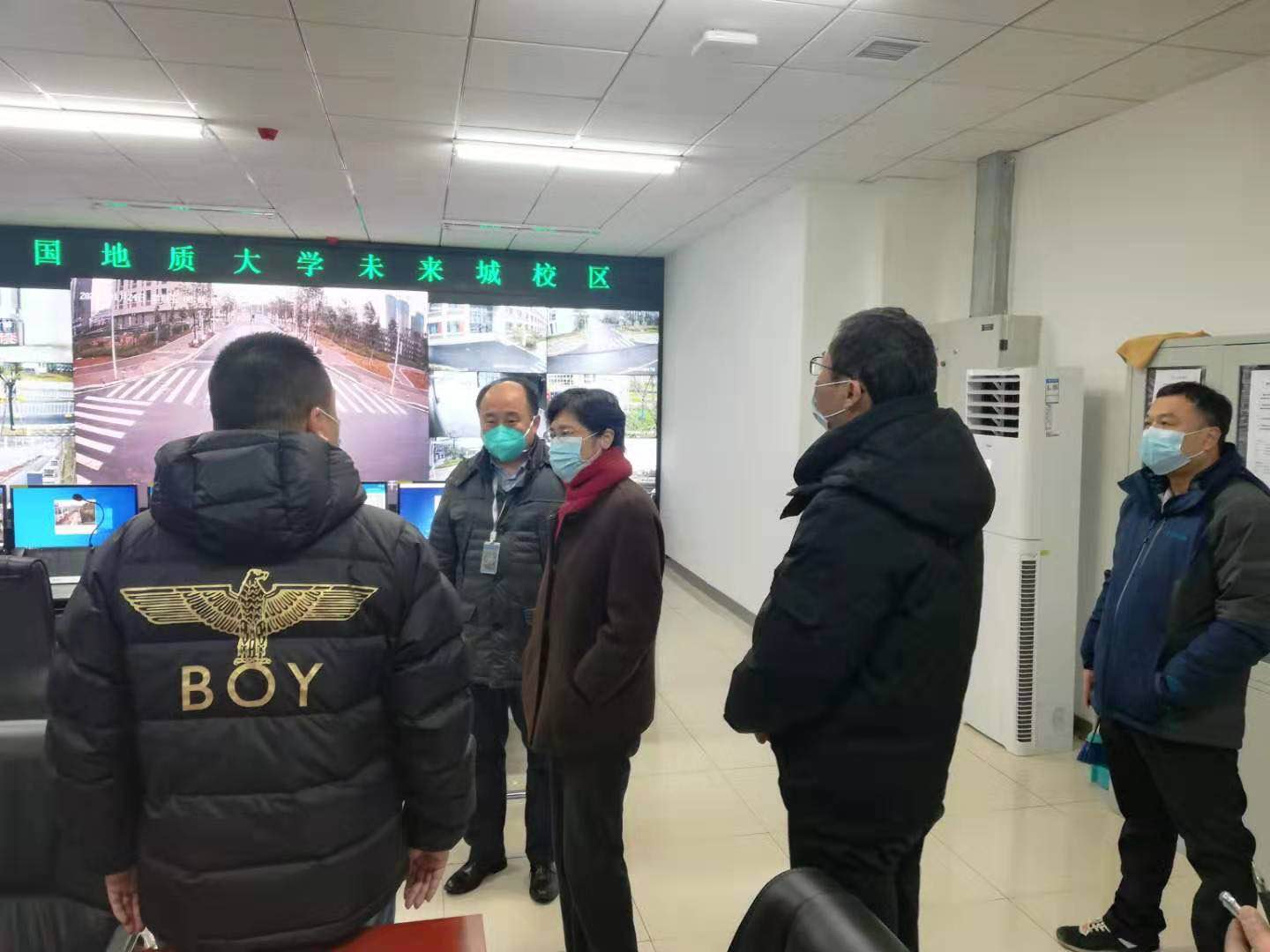 上午8时,黄晓玫一行赶赴未来城校区看望除夕在岗工作的干部职工,走访检查了未来城校区校门保卫岗、学生宿舍、食堂、医疗点、隔离点、监控中心等疫情防控和值班情况。