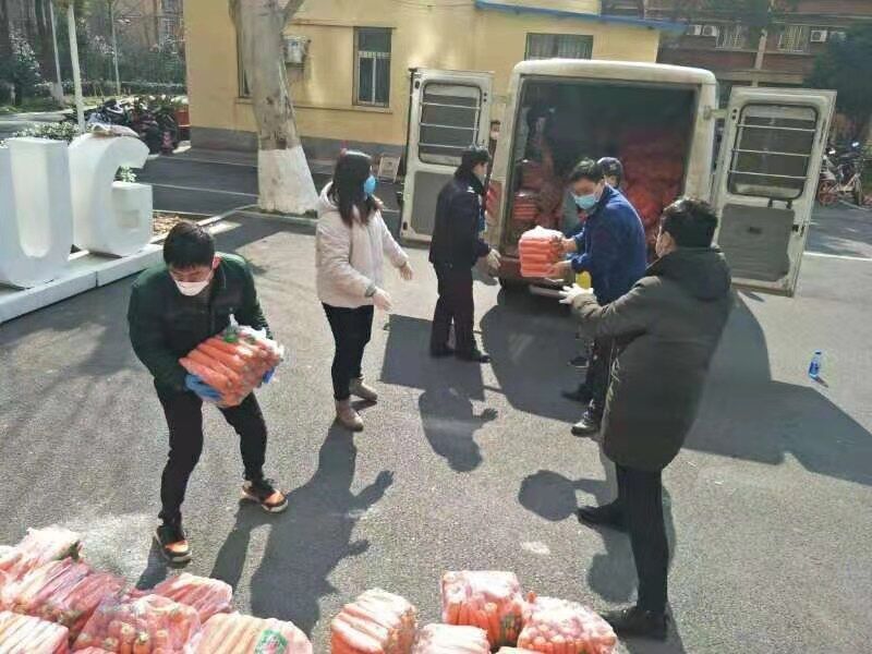疫情发生后,为了减少人员流动、人群聚集,采购食物也渐渐变成了留学生们的一大生活难题。2月3日上午,在获知这个情况后,学院与学校后勤保障处和中商超市联络沟通,采购一批耐存放的蔬菜,解决同学们的基本食物供应困难。不到半天,在中商超市的协助下,胡萝卜、土豆、洋葱、西红柿等共4000多斤蔬菜已全部到位。紧接着,留管老师们立即拟出了蔬菜发放方案并组织志愿者。2月4日上午,许峰组织动员学院在汉党员教师身体力行,与留学生志愿者一同对蔬菜进行卸货搬运、分装打包。2月4日下午,近400份新鲜蔬菜已全部发放到位。