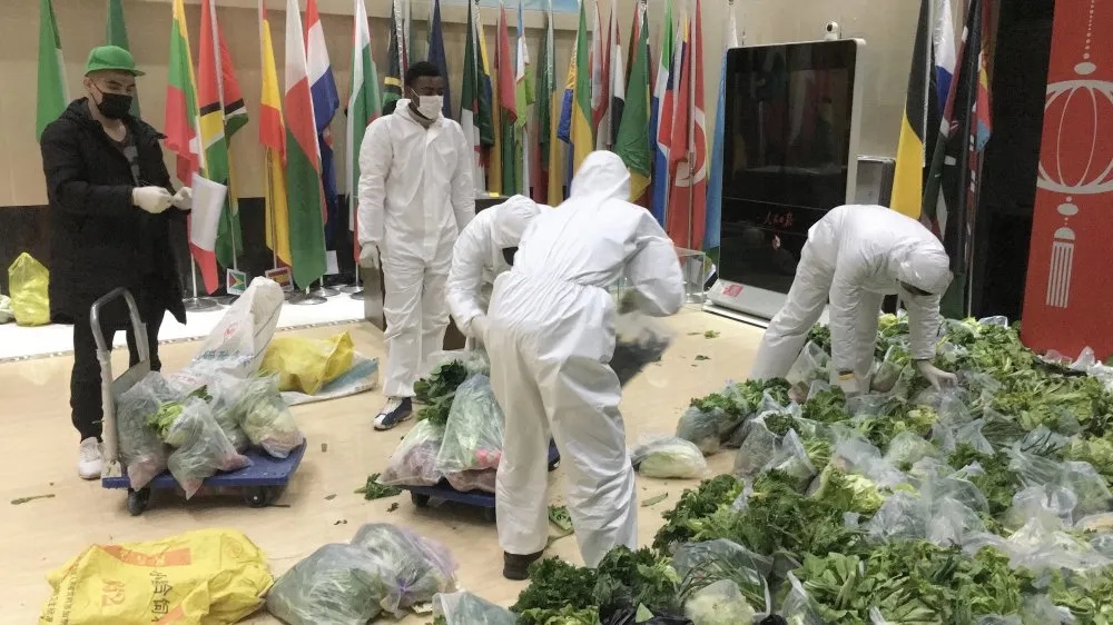 2月17日,“钢铁侠”们接到了一个临时任务,来自荆门市漳河新区双喜街道谭店村村民,为留学生们捐赠了一车蔬菜,他们早早地做好消毒防护措施,卸货、分装,4个多小时的时间,把这批爱心蔬菜分到了留学生们的手里。为保证送菜过程“更安全”,队长大明特地在hand in hand微信群里提醒大家:“我们把菜送到你的门口会敲你们的门三下,你们等20分钟以后再拿菜。”