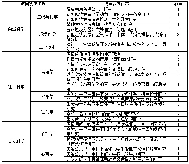 目前,共收集到来自18个学院、8个研究中心和实验室、10个职能部门的建言献策135份,项目选题53个,完成了教育部和省防控指挥部的专题约稿。其中,29份成果受到有关领导批示和采纳,被新华社政务智库报告、人民日报内参刊、中国社会科学报、中国自然资源报、教育部专题网等选用。