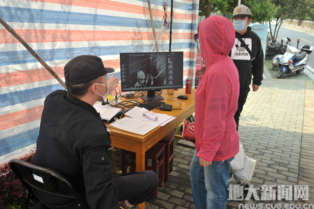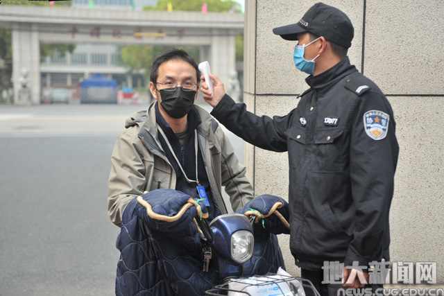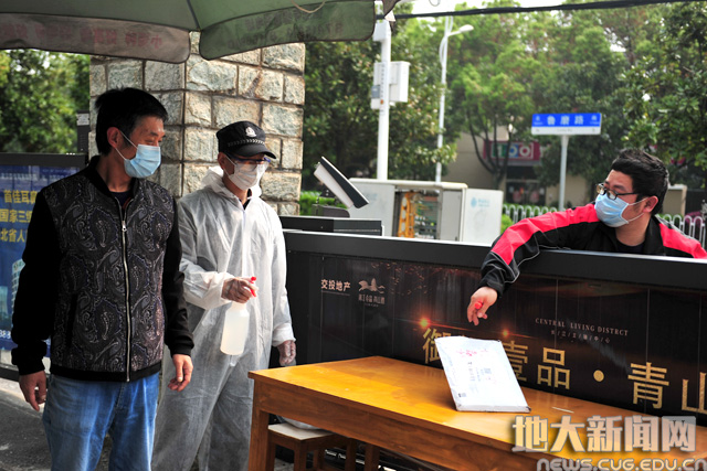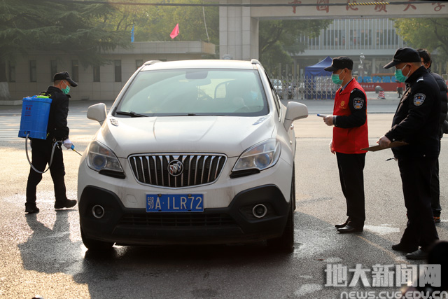 对进出校园车辆消毒,人员登记测量体温 摄影王俊芳