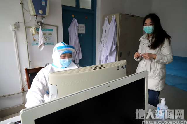 校医院接受电话和网络预约就诊,工作人员在大厅分诊台值守 摄影王俊芳