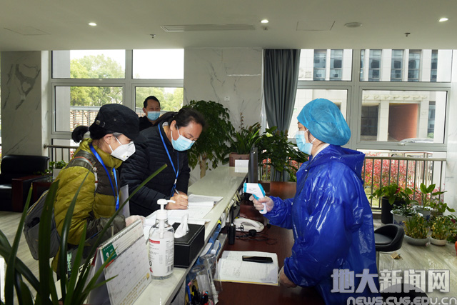 在教学综合楼大厅,教职工登记相关信息,接受体温测量 摄影屠傲凌