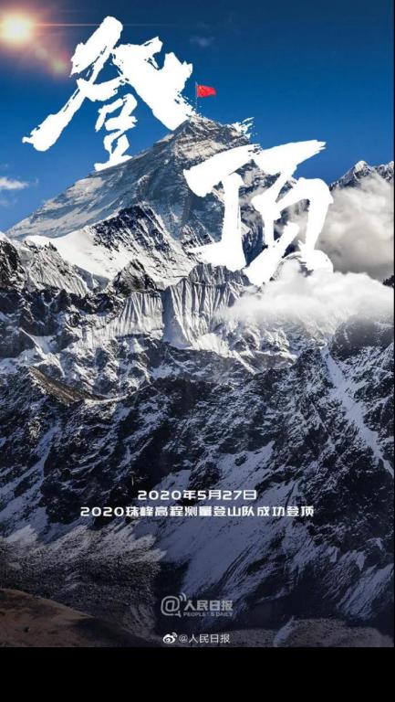 5月24日,登山队再次冲顶珠穆朗玛峰,这一次,遭遇了大风。大风从25日持续到26日。为了27日能顺利登顶,指挥部再一次调整了冲顶队员,2020珠峰高程测量登山队于2020年5月27日11点整成功登顶。