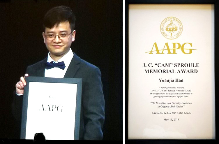 特任教授韩元佳荣获2019年美国石油地质学家协会(AAPG)优秀论文奖