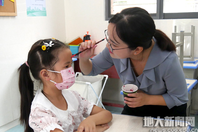 老师用朱砂为同学们的额头正中点上红痣,“痣”通“智”,意为开启智慧。寓意着孩子从此刻起眼明心亮,好读书、读好书,成为一个有智慧的人。