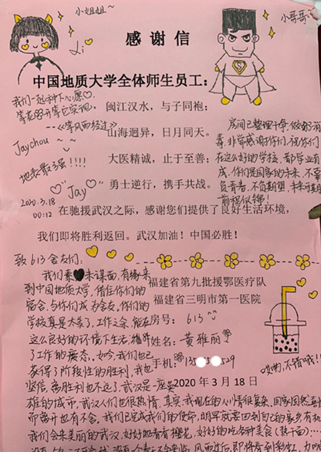2月15日,来自海南、陕西、福建医疗队的319名医护人员驰援武汉,opta足球未来城校区成为福建、海南、陕西援鄂医疗队的驻地。3月17、18日,三支医疗队先后从opta足球未来城校区出发,踏上返程之路。离别之际,海南、福建、陕西援鄂医疗队把房间都扫得很干净,在桌上留下106封感谢信,感谢学校的支持和照顾,感谢师生的热情和诚意。他们在信中说道:“opta足球为我们提供了很好的场地和条件,感谢opta足球!我们只是做了我们的职责所在……你们是武汉、是国家的未来,也希望你们不辜负青春,不负年华,不负期望。衷心希望你们的未来可期、前程似锦。”“你们感动着我们,让我们更坚强”。
