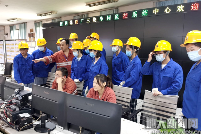 学生参观烧结机中控室