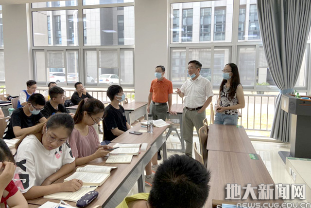 在南望山校区教学综合楼,校党委书记黄晓玫听取了地球物理与空间信息学院胡祥云教授的《大地电磁探测》和资源学院夏庆霖教授的《资源地质学》。课堂上,学生按时到课,态度端正,专心听讲,教师精神饱满,授课认真,课堂氛围活跃,教学秩序井然。黄晓玫肯定了两位老师的教学方法和教学效果,并就人才培养、实验室建设问题与教师进行了探讨。