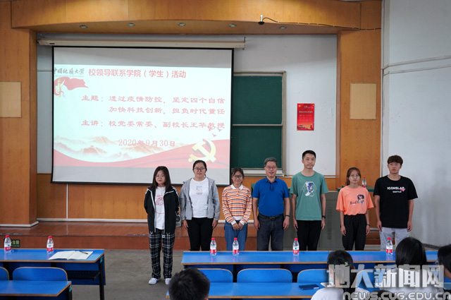 王华指出,在党中央领导下,全国上下同舟共济、舍生忘死、尊重科学、命运与共,取得了疫情防控的阶段性重要成果,这充分证明中国共产党是人民最可靠的主心骨,人民群众是战胜艰难险阻的力量源泉,要更加深刻认识中国特色社会主义制度的优越性,增强“四个意识”、坚定“四个自信”、做到“两个维护”。他希望学院和广大师生要始终保持压倒一切困难而不为困难所压倒的决心和勇气,统筹推进常态化疫情防控和教育教学,努力完成各项任务。