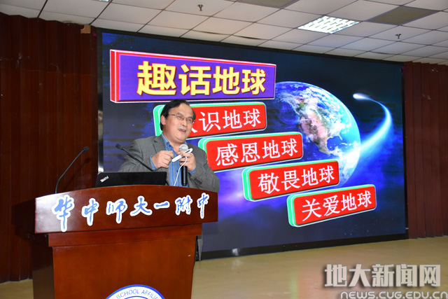 座谈交流结束后,徐世球教授以《趣话地球》为题,给华师一附中的高一学子作了一场生动的地球科学科普报告。他从认识地球、感恩地球、敬畏地球、关爱地球四个方面,讲述地球科学的奥秘,语言幽默风趣,赢得现场的阵阵掌声。 (文字编辑庞伟红)