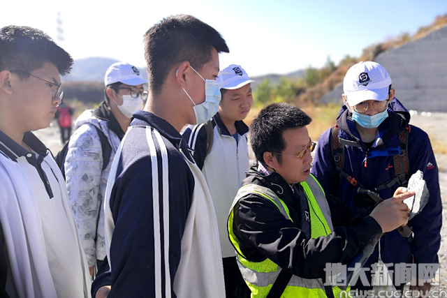 老师们正在为学生讲解地质知识