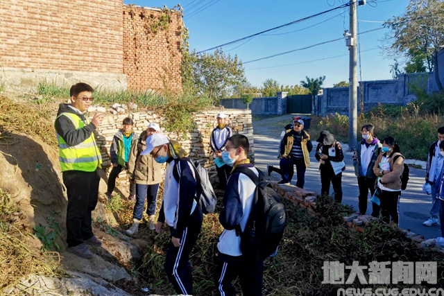在野外研学阶段,郑建平教授、李益龙教授、王国庆副教授、刘德民副教授、博士研究生赵立民、硕士研究生吴飞率领师生们围绕官地村,讲解了官地杂岩、房山岩体、羊屎沟接触变质带的精彩现象及地质意义。师生们体验了标本观察和样品采集、地形地貌的观察等地质技能,深刻体会了地质学的野外工作方法及地质思维对实际工作的指导意义。官地村头迷人的花岗岩风化地貌、羊屎沟中形态各异的变质矿物、磊孤山上宏伟壮观的矿山遗址都给师生们留下深刻的印象,同学们由衷地表达了为实现人类与地球和谐发展而共同努力的志愿。