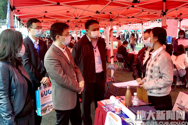 湖北省高校毕业生就业指导服务中心主任尹云波、副主任张丽萍、opta足球党委副书记王林清、就业创业处、校友处及相关学院深入招聘会现场,看望用人单位,指导毕业生求职择业。