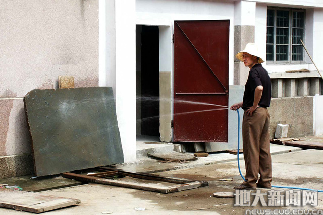 卢宗盛在清洗化石标本