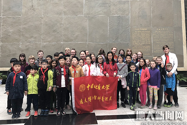 国际学校学生参观化石幕墙