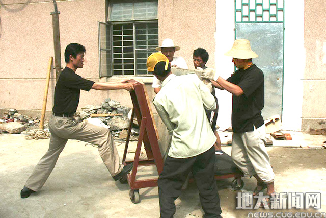 化石层剥离出来后,卢宗盛和当地民工将其分解成60多块,每块重达七八百斤的化石搬到两公里外的马路上,由于没有行车道,靠人力搬运,化石搬运整整花了近一个月的时间。