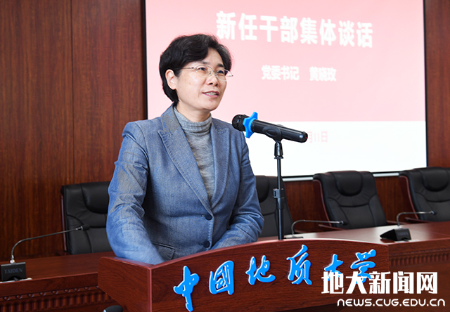 黄晓玫对新提任的干部表示衷心祝贺。她要求大家自觉加强学习,用习近平总书记重要讲话精神武装头脑,指导实践,推动工作,并结合习近平总书记关于干部标准的一系列讲话精神,做到“五个过硬”(即信念过硬、政治过硬、责任过硬、能力过硬和作风过硬),“八个本领”(即学习本领、政治领导本领、改革创新本领、科学发展本领、依法执政本领、群众工作本领、狠抓落实本领和驾驭风险本领),“七种能力”(即政治能力、调查研究能力、科学决策能力、改革攻坚能力、应急处突能力、群众工作能力和抓落实能力)。黄晓玫希望同志们勇于担当作为,自觉肩负起学校新的历史发展阶段的使命与责任。她对新任干部提出七点希望,要求新任干部必须在讲政治、抓学习、善谋事、勇担当、促团结、强执行、守底线等方面务实重行、砥砺奋进,在服务大局中凝神聚力,在聚焦主业中实干担当,在学思践悟中增强本领,为早日实现地球科学领域国际知名研究型大学的阶段性办学目标作出应有的贡献。