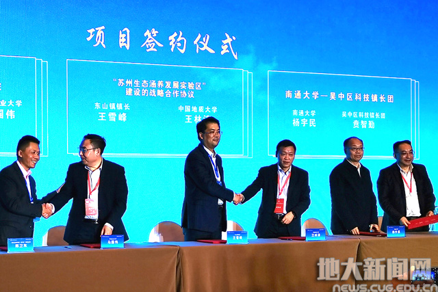 19日,王林清应苏州市委、市政府邀请,参加“大院大所合作发展大会”,环境学院副教授罗朝晖、崔艳萍、颜诚,苏州市吴中区东山镇挂职副镇长、机电学院副教授刘浩参会。会上,王林清、苏州市吴中区东山镇镇长王雪峰签署“苏州生态涵养发展实验区建设”战略合作协议。