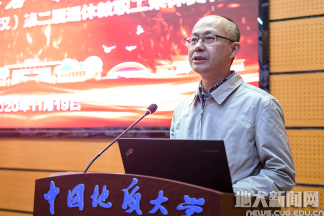 校老年人协会会长杨昌明教授表示,从在岗到退休,是人生的重大转变,希望各位荣休教职工退休不褪色,离岗不离职责,不断增强“四个意识”,坚持“四个自信”,做到“两个维护”,以主人翁的态度,关心、支持学校的发展,为把学校建成地球科学领域世界一流大学继续做出贡献。