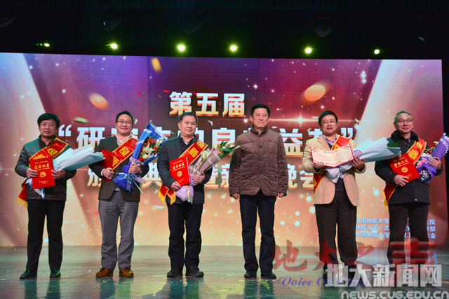 2016年1月7日,时任党委书记郝翔(右3)给第五届“研究生的良师益友”颁奖。
