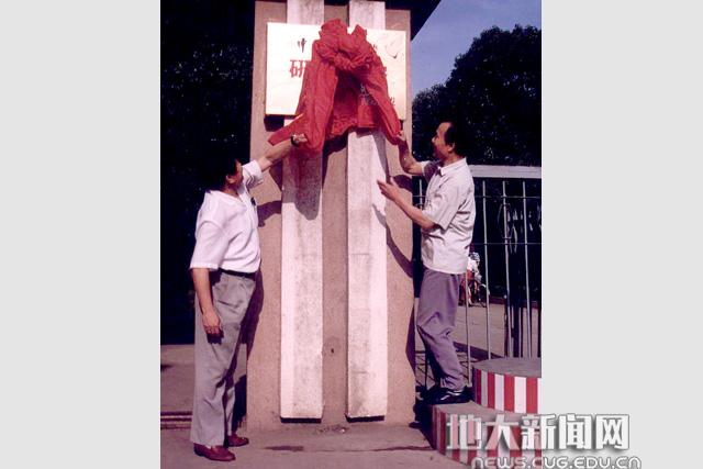 1996年,时任校长赵鹏大(左)、党委书记赵延明(右)为研究生院揭牌