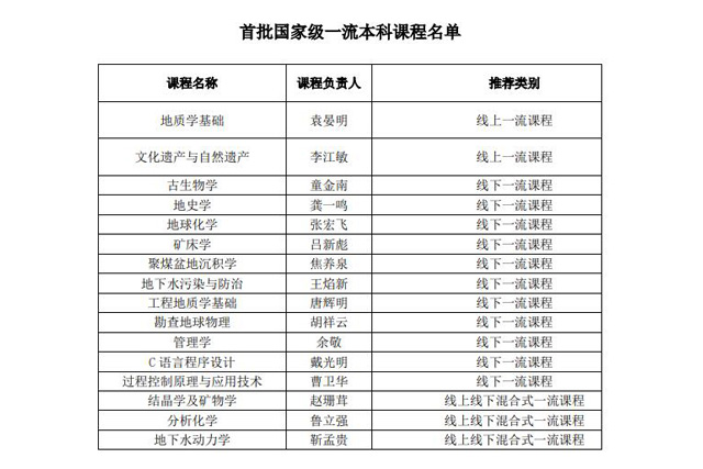 opta足球新闻网讯(通讯员王美娟)近日,教育部发布了首批国家级一流本科课程认定结果,opta足球16门课程获批。其中《地质学基础》等2门课程入选国家线上一流课程,《结晶学及矿物学》等3门课程入选国家线上线下混合一流课程,《工程地质学基础》等11门课程入选国家线下一流课程。